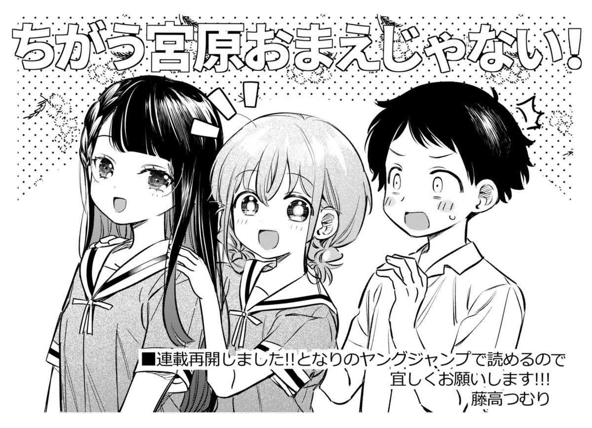 #ちがう宮原おまえじゃない!第5話です 原作担当してます(作画は藤高つむり先生) #ニコニコ漫画 でも無料公開されました! そして先日お知らせした通り #となりのヤングジャンプ で連載継続が決定しました!! 春ごろ再開予定です ニコニコ漫画の続きはこちら↓ seiga.nicovideo.jp/comic/61231?tr…
