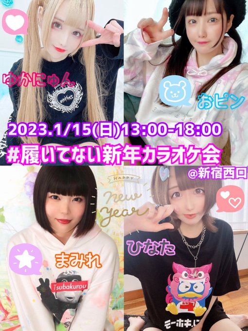 2023.1/15(日)13:00〜18:00 #履いてない新年カラオケ会 ⏬詳細&ご予約は⏬ forms.gle/XvpmbFMVxXhroR… ゆかピンげろまみれで初のカラオケオフです🎤🎶 歌いたい人も聞き専さんも大歓迎❣️ 下を履いてない?!と思わせちゃうようなBIGパーカーやセーターの女の子たちと楽しい新年会しようっ✨✨ #とは