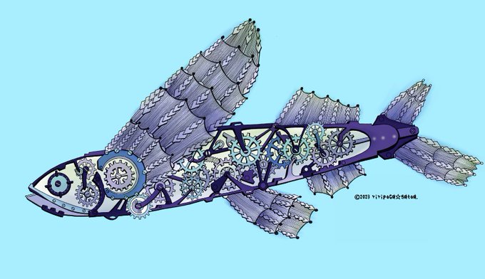 おはようございます(о´∀`о) 今週もよろしくお願いします♪ 大繁忙期が迫ってきてガクブルです :(;゙゚'ω゚'): ⚙とびうお⚙ #創作 #歯車イラスト #スチームパンクイラスト #とびうお #絵描きさんとつながりたい