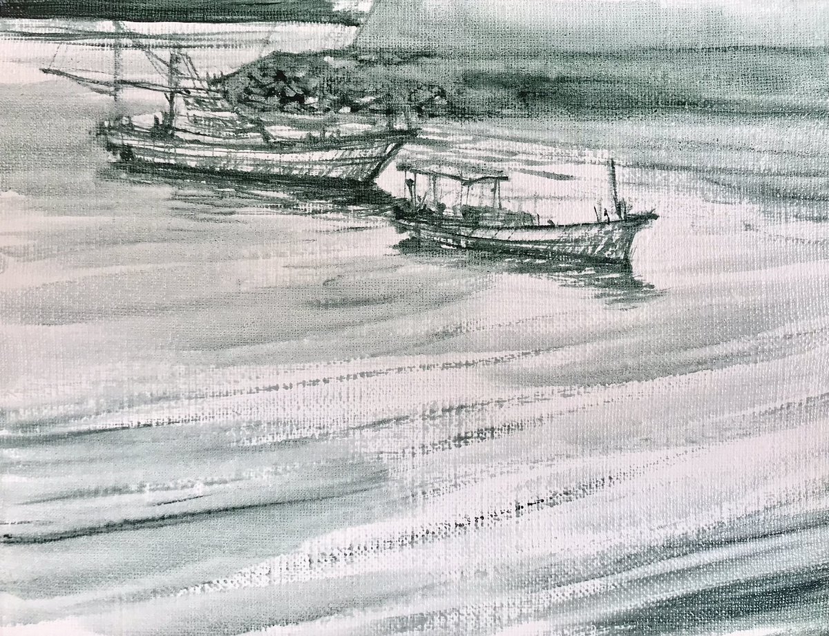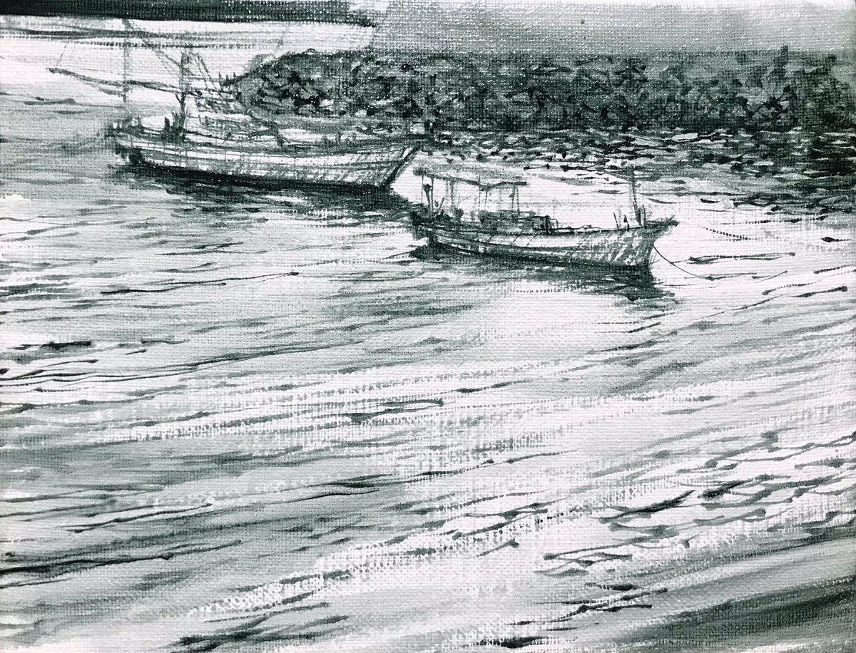 油彩画の描き始めは墨絵風。 筆は慣れるしかない。 今でも思い通りの線は引けてません。 #art #artist #gallery #watercolor #oilpainting #mitarai #呉市 #とびしま海道 #アートのある暮らし #水彩画 #油彩画 #絵の好きな人と繋がりたい #絵画のある暮らし #ギャラリーめぐり #筆は友達