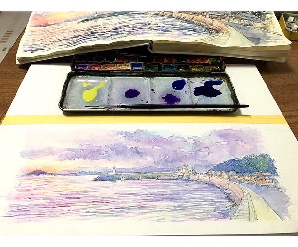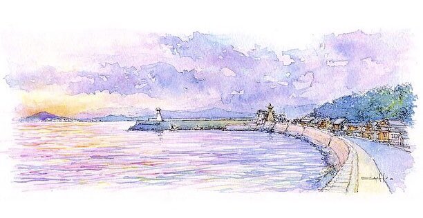 AM5:30-7:00 @Mitarai 2022 July 18 #watercolor #aquarelle #landscapepainting #seascapepainting #japanesepainter #水彩 #水彩画 #風景画 #海景 #とびしま海道 #大崎下島 #御手洗 #みたらいギャラリー #アートのある暮らし #絵の好きな人と繋がりたい #絵画のある暮らし #ギャラリー巡り #朝陽