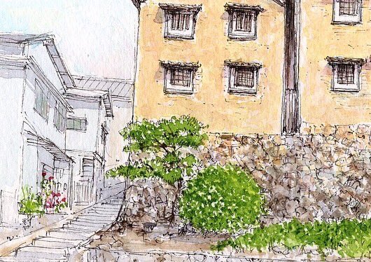 Blue Red Yellow and Black of pen, that’s enough. I learned from the home printer. プリンターインクCMYKに習い、赤青黄色にペンの黒があれば十分。 #watercolor #mitarai #呉市 #とびしま海道 #大崎下島 #御手洗 #みたらいギャラリー #アートのある暮らし #水彩画 #絵画のある暮らし