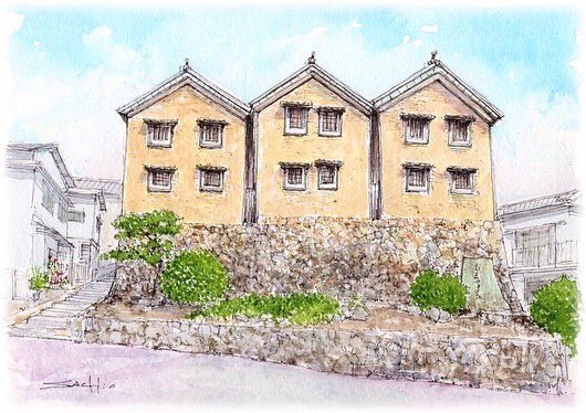 日の出がイマイチの時は、港町に当たる陽光を間接的に描くこともできます。 御手洗ならではのメリット。 構図はパノラマにせず、コンパクトにまとめてます。 #とびしま海道 #大崎下島 #御手洗 #みたらいギャラリー #アートのある暮らし #水彩画 #絵の好きな人と繋がりたい #絵画のある暮らし