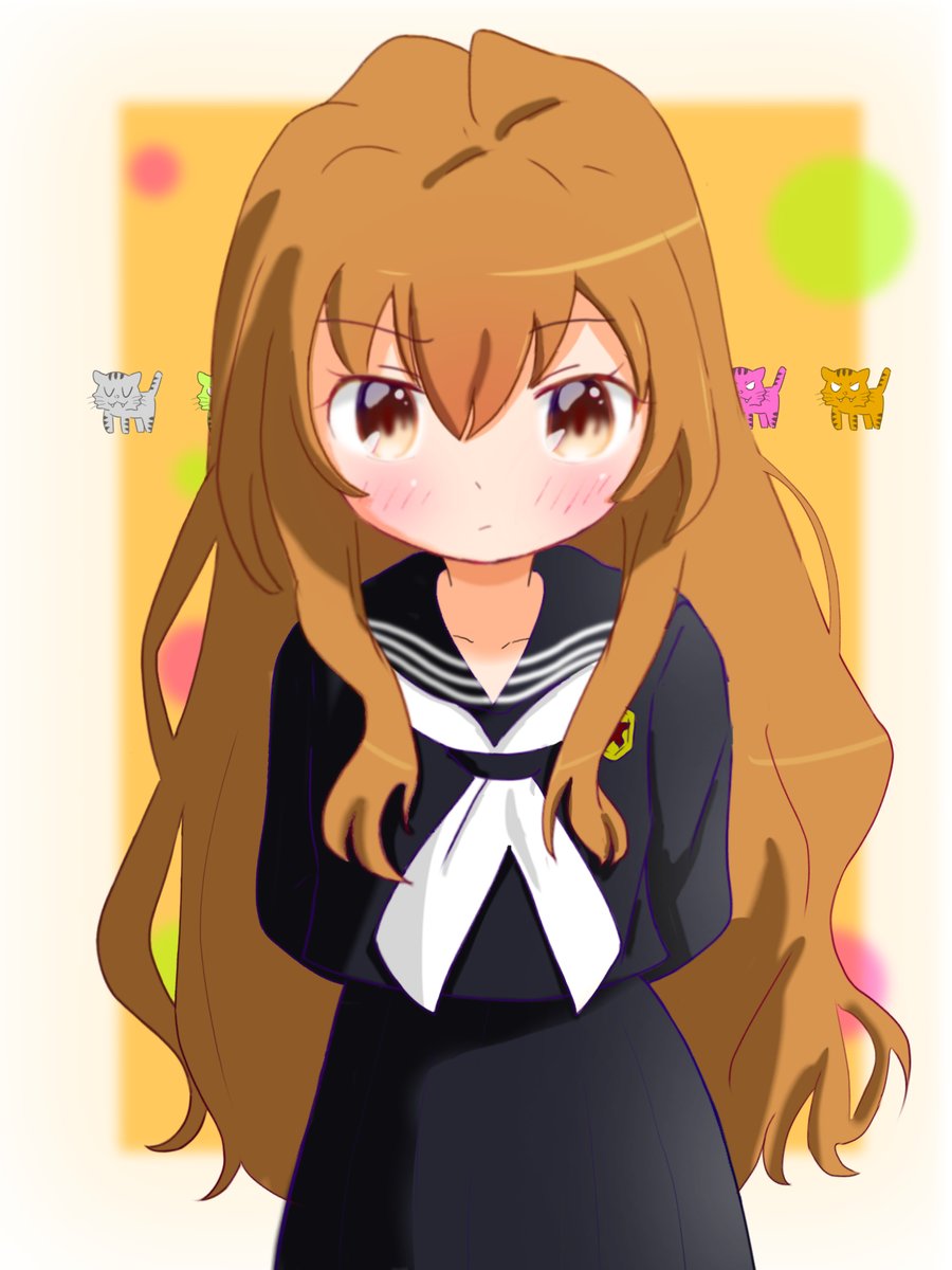 大河ちゃんカラーラフ~のはずが…(=゚ω゚)ノウニャンコ♪ 大量の落書きになってるなぁ 個人的に好きなアニメ最終話の制服姿ニョロね~ …………ポンデライオン(ノシ'ω')ノシッポバンバン! #とらドラ #絵描きさんと繋がりたい