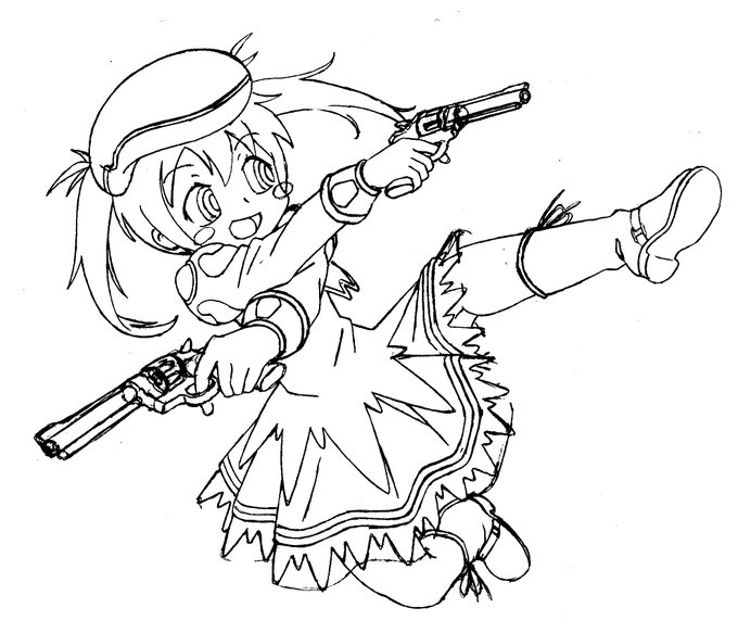 何かガンアクション描きたくなったので、 シューティングゲーム大好きな #とれこちゃん をモデルにしてラフ画描いてみました (資料が乏しいので細部は適当に…) ネタは少し前のゲームですけど、ガンデモニウムス platinedispositif.net/pd/gundemonium