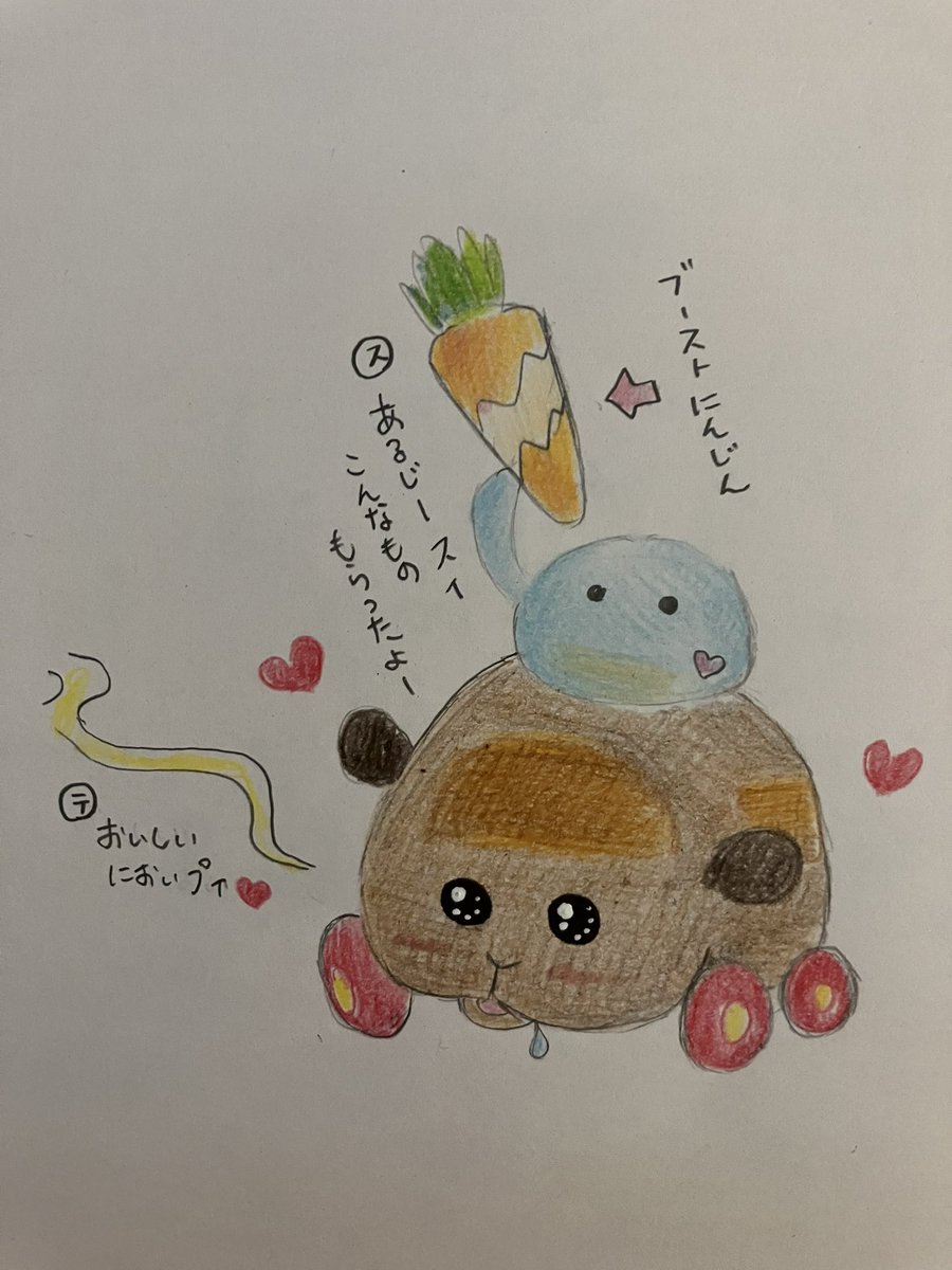 少し落書き モルカーのテディちゃんと異世界放浪メシのスイちゃんのクロスオーバーのイラストを描いてみた🥰✨なんでもよく食べるこの二人は推せる❣️ #モルカーファンアート #とんでもスキルで異世界放浪メシ #クロスオーバー