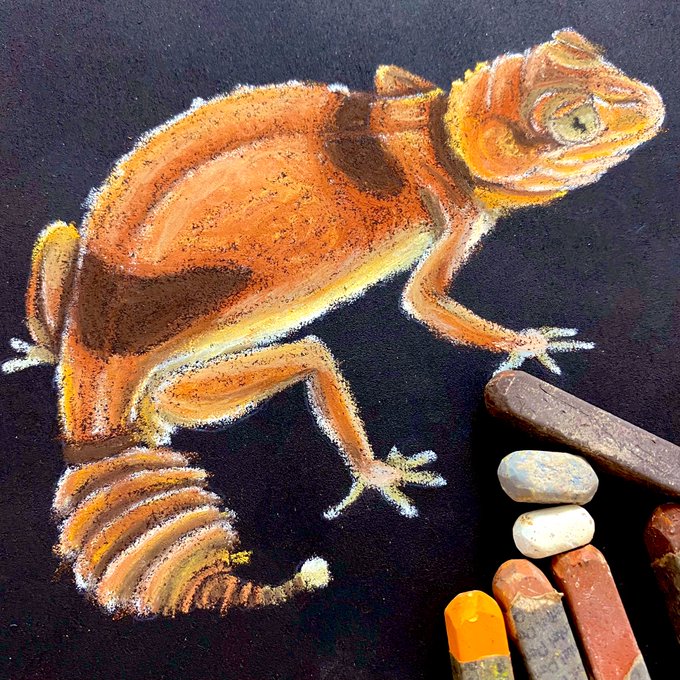 #10月になったのでフォロワーさんに自己紹介しようぜ チョークアーティストをしています😊 31日(日)まで #ミニ自在展弐 に出展中! 11月7日(日)は #とんぶり市 に初出展! 爬虫類などの作品は少しずつ公開していきます✨