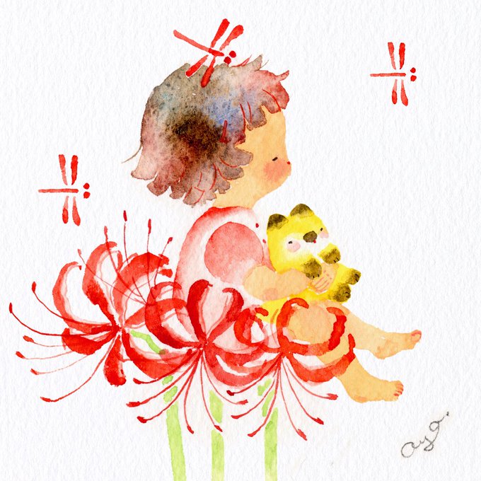 コスモスちゃんの季節🌸 Cosmos season is here🌸 #水彩画 #水彩イラスト #watercolor #illustration #watercolorpainting #手描きイラスト #アナログイラスト #こばやしあや #水彩 #コスモス #少女 #秋 #とんぼ