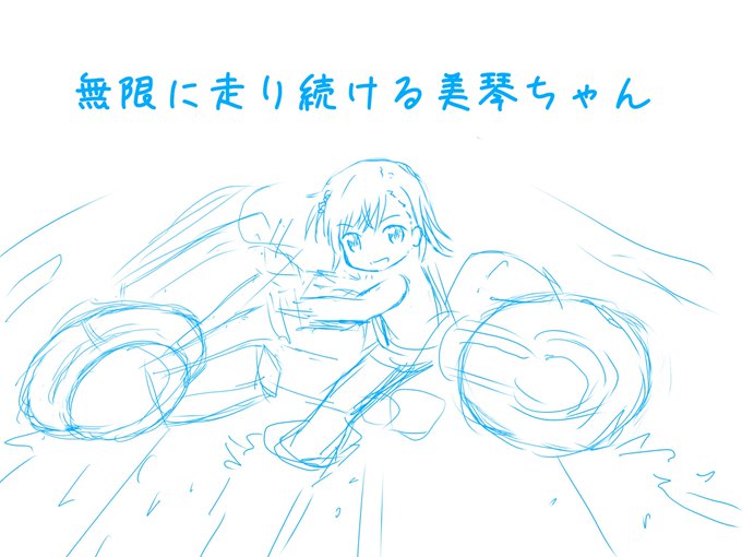 大ラフ〜(=゚ω゚)ノウニャンコ♬ 金田からバイクを奪って上機嫌の美琴ちゃん〜(無免許だよなぁ〜)(ノシ'ω')ノシッポバンバン! #どうしてこうなった #御坂美琴 #とある科学の超電磁砲 #絵描きさんと繋がりたい #可哀想な金田