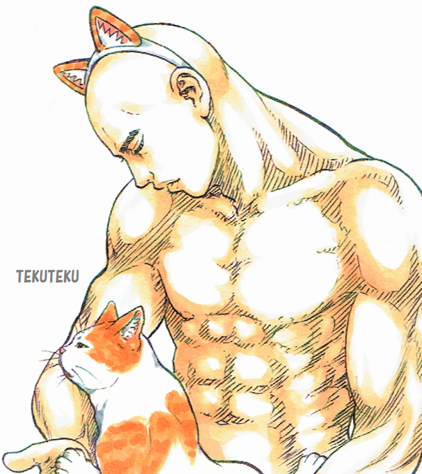 #どうでもいい報告をする #夏日 暑いので腕まくりをしたら腕の血管(筋トレ・ボディビル用語で言うバスキュラリティ)が浮き出ていい感じだったので自撮りしようとしたら光の加減で良く見える位置だと部屋の余計な物が写るしそれを避けるといまいち血管が…でやめた💪😅 #猫好き #オリジナルイラスト