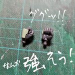 #どうでもいい報告をする #ガンプラ #ガンキャノン ①これ、リバイブのガンキャノンさんのふんわりコブシなんですけど、 ②武器持たせたら手のひらがグリップの手前に❗️ こうは ならんじゃろ…😫 ③武器持たせて不自然になるところを こう‼️😤 ④カタチ整えて ハイ‼️😆