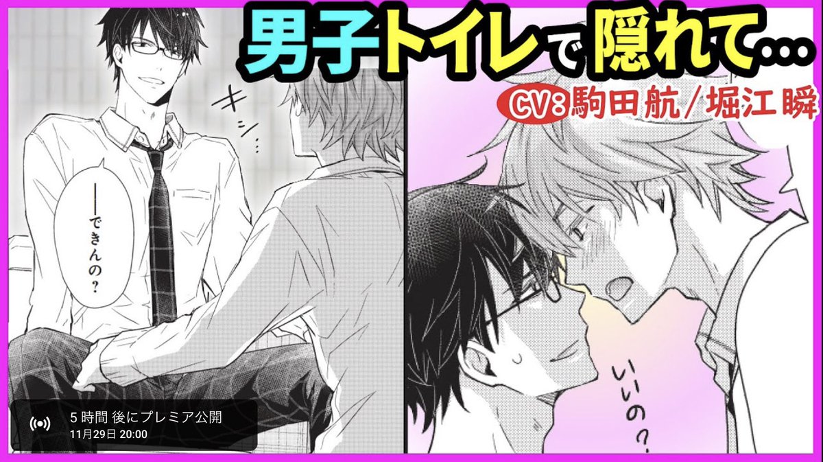 #どうぼく ボイスコミック第4話!!!! 🎙11/29本日20時〜プレミア公開です!リアタイできる方はぜひ!(アーカイブも残ります)今回は男子トイレに連れ込んで…(校内あらゆる死角で致したいDK🤦♀️)YouTubeポリシーな部分はぜひ単行本でね😉コメント高評価ch登録〜文字数… youtu.be/HTh6TYc7uBE #商業BL