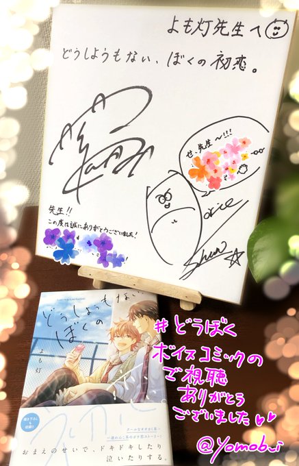 🎙️#どうぼく ボイスコミック全6話、無事最終話を迎えました! 制作して下さったアンジェンテ様、ご視聴頂いた皆様、そしてキャストの皆様、本当にありがとうございました!アーカイブもございますのでご視聴まだの方も是非どうぞ~ youtube.com/playlist?list=… 色紙は駒田航さんと堀江瞬さんから🥹 #商業BL twitter.com/yomob_i/status…