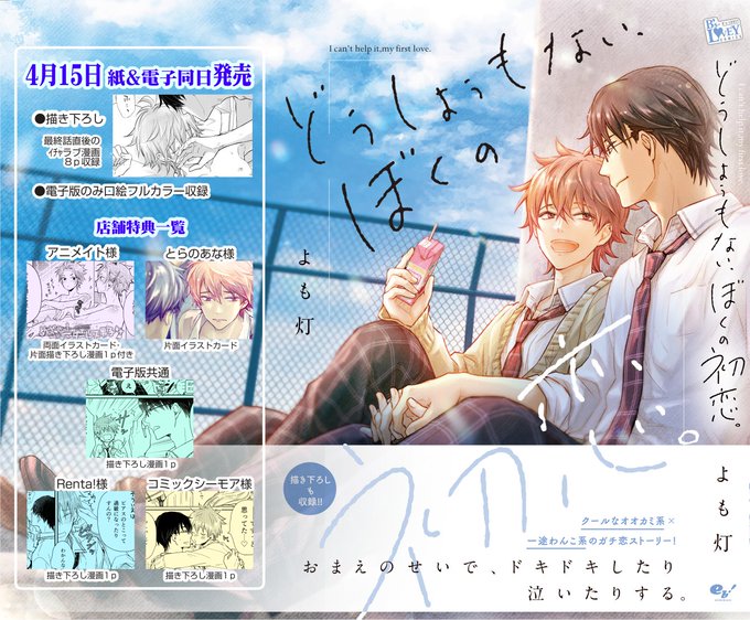 💟#どうぼく 購入特典などまとめました。描き下ろし楽しく描かせて頂きました🥰初単行本で紙部数が少ないのでぜひ予約などして頂けますと確実かと思いますが電子も同日発売ですので宜しくお願い致します!!😳 twitter.com/yomob_i/status…