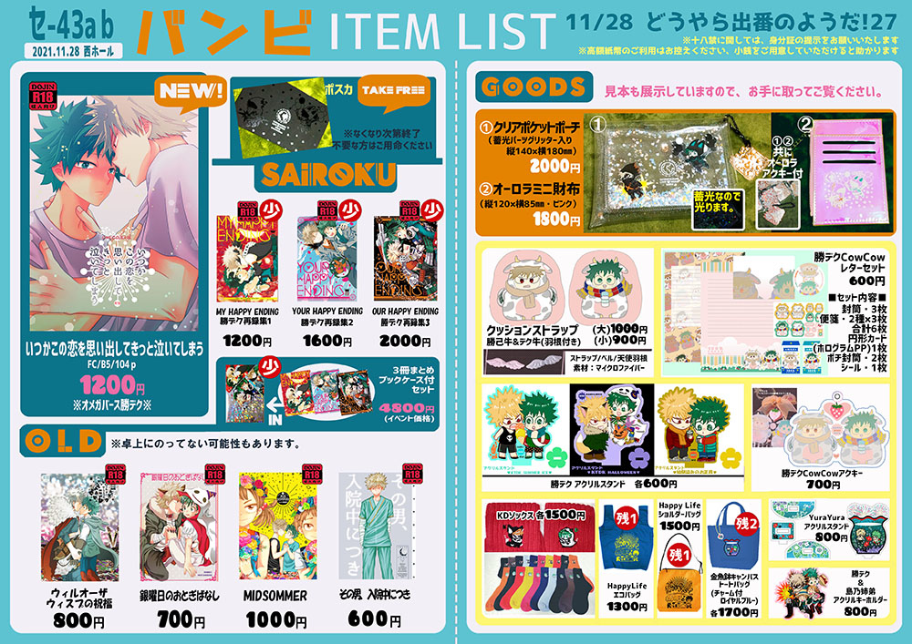 2021.11.28 どうやら出番のようだ!27 のお品書き #お品書き #hrak【腐】 #勝デク #出番27 #どうやら出番のようだ!27 pixiv.net/artworks/94347…