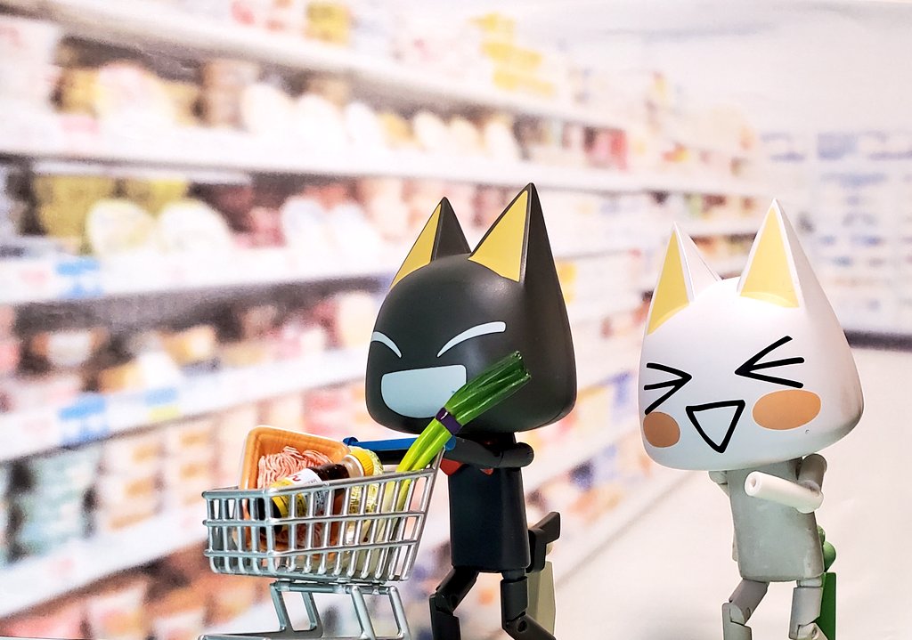 「今夜はお鍋みャ!」 「わーい、お鍋、お鍋♡」 「ビール買おうぜ!」 「よし! お酒売り場にレッツゴーなのニャ!!」 #深夜のクロネコネタ真剣60分一本勝負 #どこでもいっしょ #どこいつエブリディ