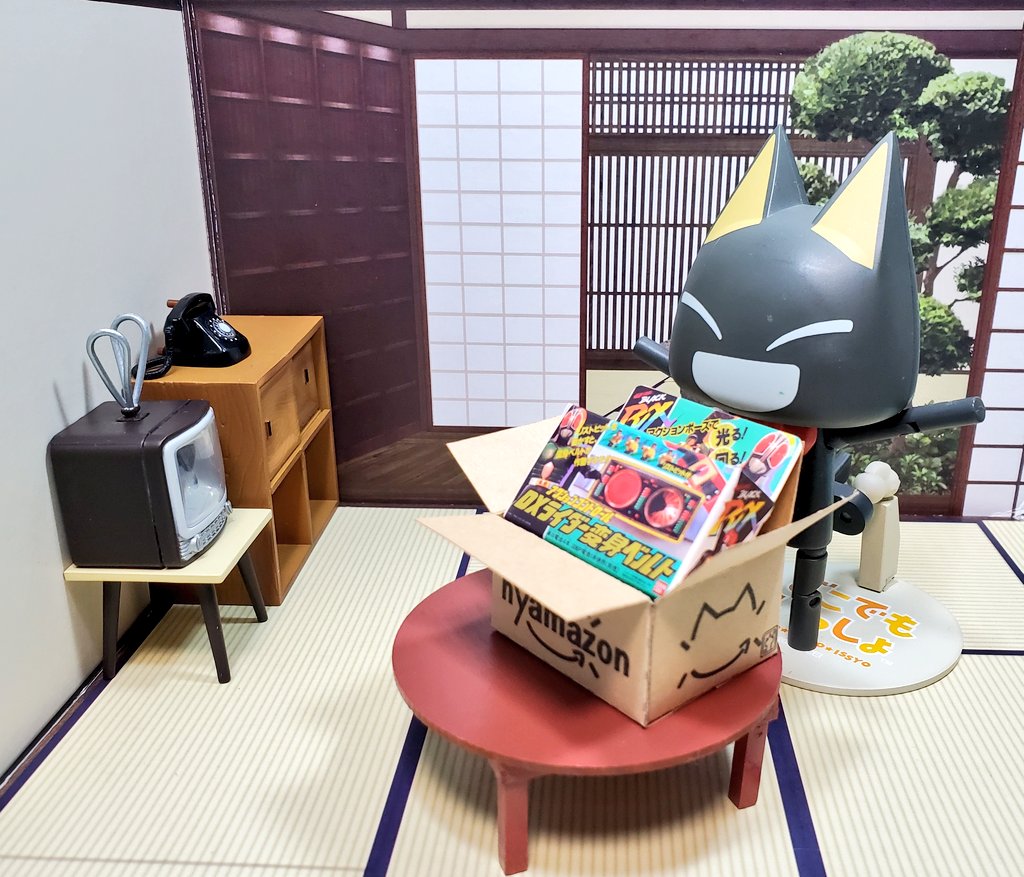 <<ピンポ~ン お届け物でーす!>> 「はいはい、今行きますみャ〜」 「中身は何かみャ?」 「おっ! ネトオクで競り落とした、仮面ライダーBLACK RXの変身ベルトみャ! よーし遊ぶぜぇ〜」 #深夜のクロネコネタ真剣60分一本勝負 #どこでもいっしょ #どこいつ
