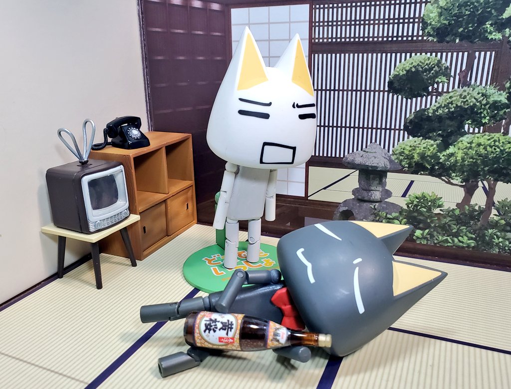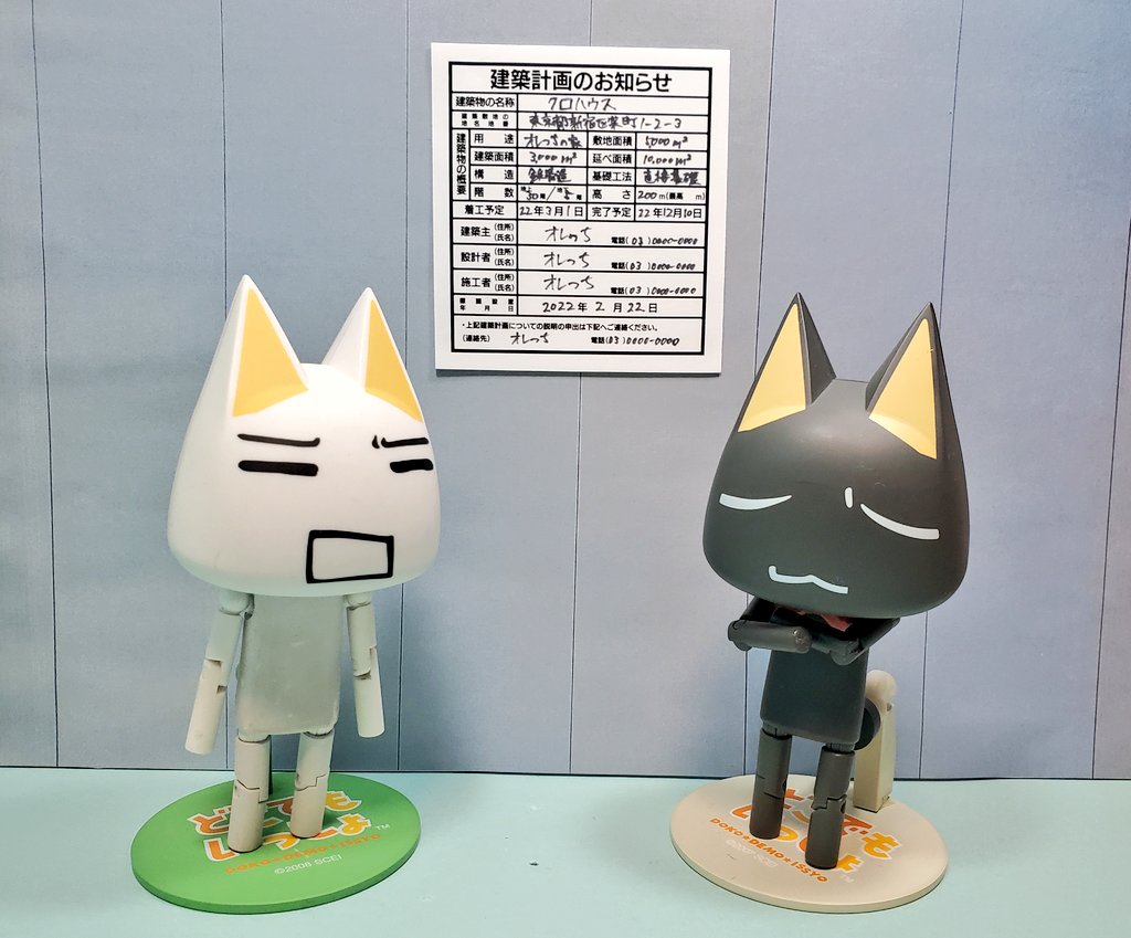 「見よ、この建築計画を! ここにオレっちの豪邸が建つのみャ〜。(あくまで予定だけどみャ)」 「……(あいかわらず夢だけはデカいクロなのニャ)」 #深夜のクロネコネタ真剣60分一本勝負 #どこでもいっしょ #どこいつ