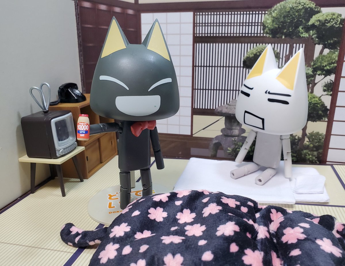 「この今ウワサの乳酸菌飲料で、夜もグッスリ! まさに最強なのみャ〜」 「それよりクロは、寝る前にスマホいじったり、寝酒するのをやめたほうがいいと思うのニャ」 #深夜のクロネコネタ真剣60分一本勝負 #どこでもいっしょ #どこいつ