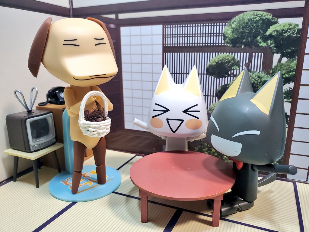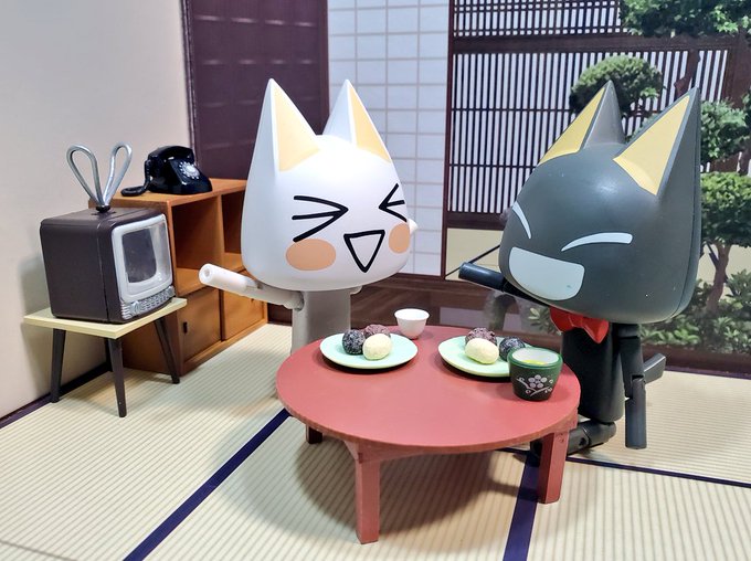 「今日は秋分の日。お彼岸の中日みャ」 「わーい、おはぎなのニャ! おいしそうニャ」 「あんこ、きな粉、黒ごまの三色おはぎみャ。でも関西では、黒ごまより青のりの方がおなじみらしいみャ」 #深夜のクロネコネタ真剣60分一本勝負 #どこでもいっしょ #どこいつ