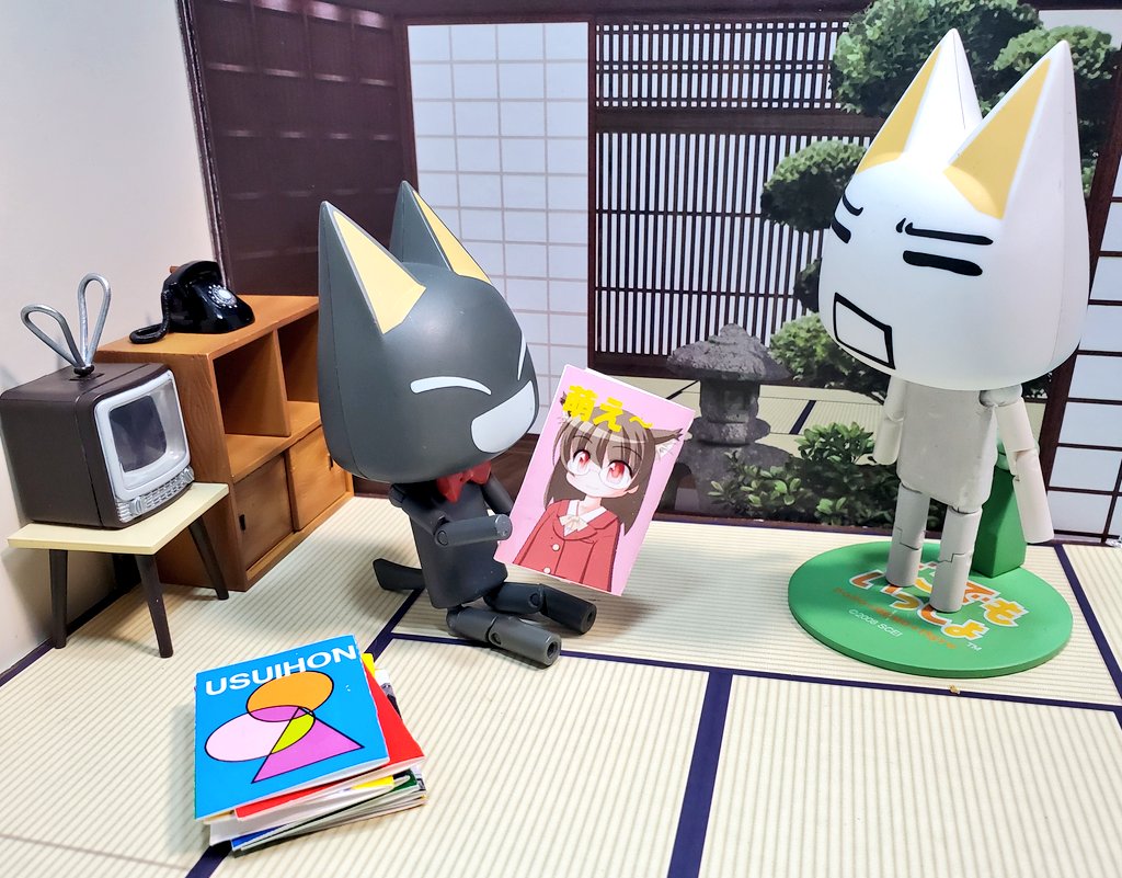 「秋と言えば、読書の秋。読書と言えば、薄い本なのみャ〜。さぁ、読みまくるみャ」 「そんな本じゃ、すぐ読み終っちゃうのニャ…」 #深夜のクロネコネタ真剣60分一本勝負 #どこでもいっしょ #どこいつ