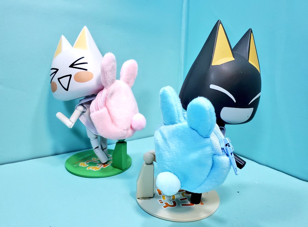「朝のラジオ体操だピョン! そーれ、1、2、3、4!」 「(やれやれ、朝っぱらから体動かすのはツラいのみャ……)Oo。.」 #深夜のクロネコネタ真剣60分一本勝負 #どこでもいっしょ #どこいつ