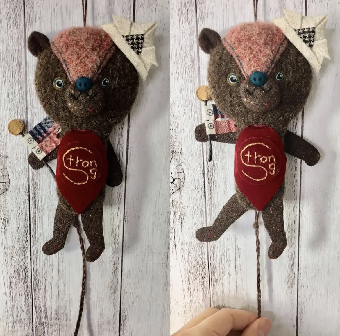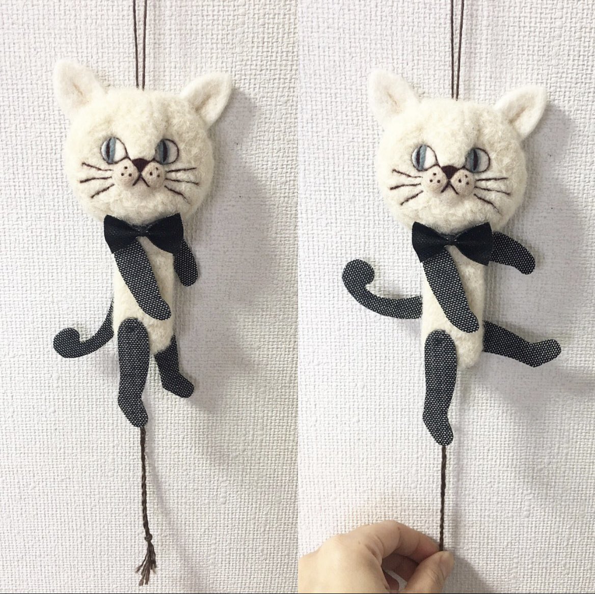 #どこにもない作品あります #羊毛フェルト を使用した、ハンペルマン人形です。紐を引っ張ると手足が動きます。なにげに癒されます。 minne minne.com/@chicchicfelt Creema creema.jp/c/chicchic/ite… @Creema_jpより