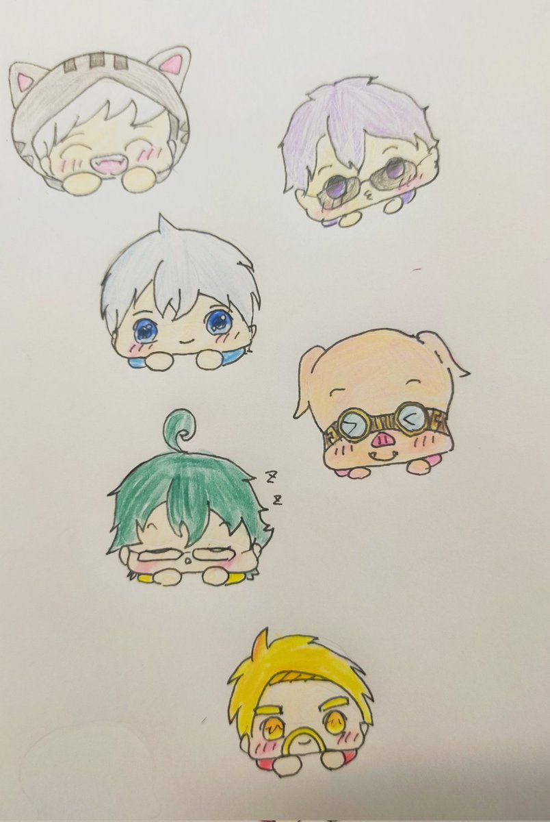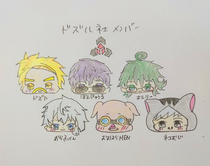 ドズル社メンバー書いてみました(*^^*) これからも応援してます🦍🍆🍌☃️🐷😼 #ドズル社アート #どずってる #ぼんさん何してんすか #はよ見ろやあ #見るかもわからん #誰でも見れますねぇ #今回のネコおじ