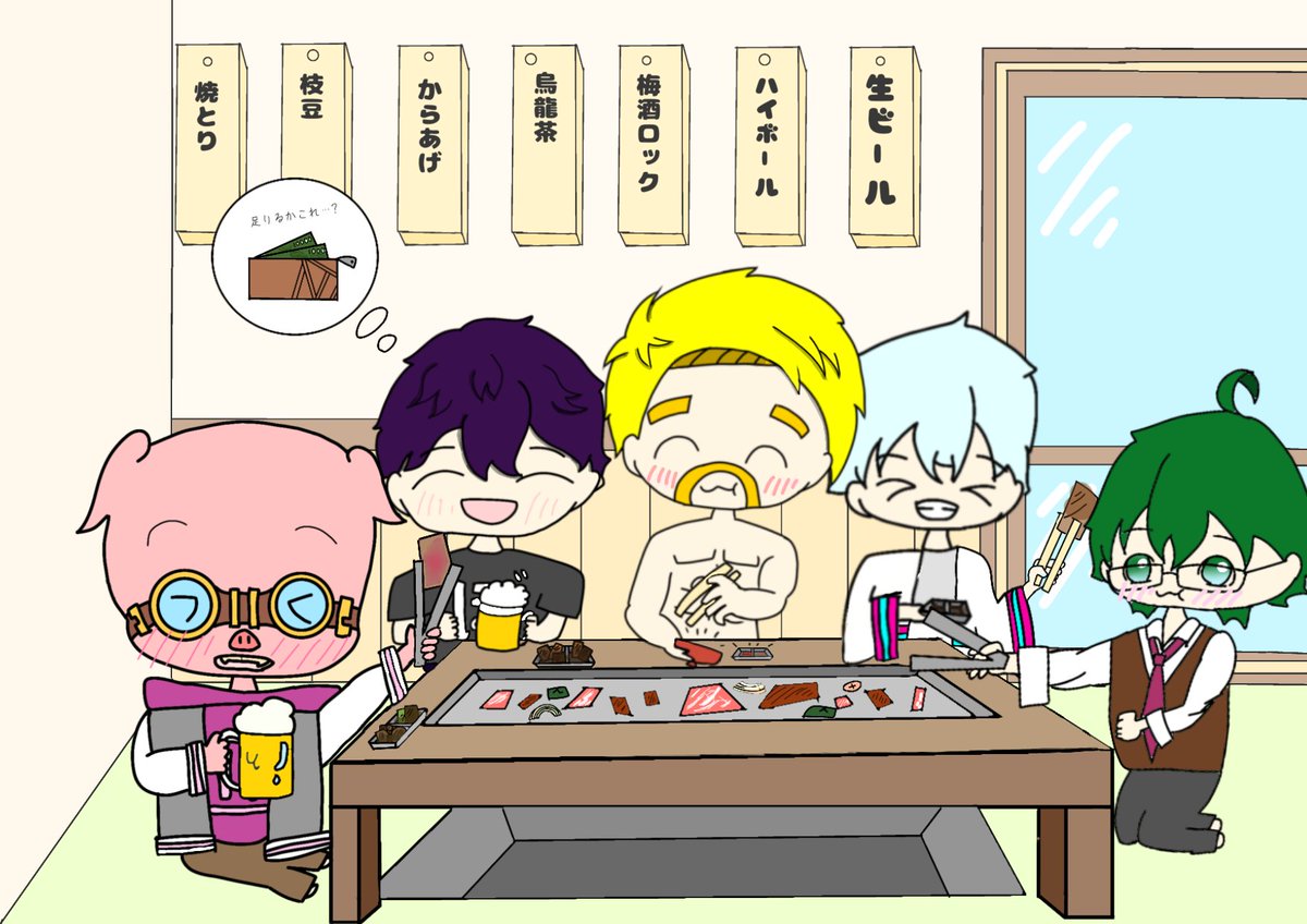 ドズル社メンバーがリアルで焼肉行ったら… ※想像なのでお気になさらず 2枚目はもうただの妄想 #ドズル社アート #どずってる #ぼんさん何してんすか #はよ見ろやぁ #見るかもわからん #誰でも見れますねぇ