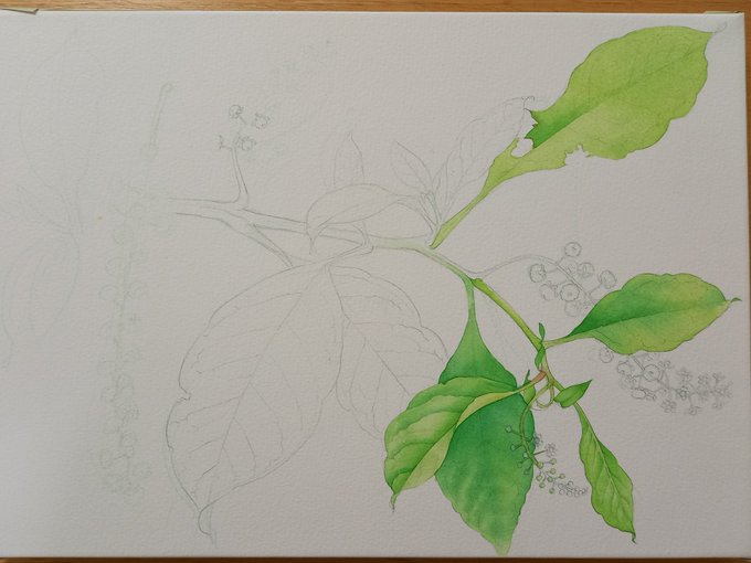 残念ながらタイムアウトです🤷 仕上げまで時間が足らず剥がします🤦 せっかくウォーターフォード貼ったのになぁ😢来年までもつかな😂 「ざんねんむねん ふかくのいたり しまったしまったくちおしや~」 #水彩画 #植物画 #イラストレーター #Illustrator #ヨウシュヤマゴボウ #どろぼうがっこう
