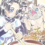 今日のお絵描き 完成 #神崎アオイ の #どんぐり 料理 伊之助ならサプライズより大っぴらなプレゼントのが喜びそうです #クッキー #嘴平伊之助 #栗花落カナヲ #竈門炭治郎 #鬼滅の刃 #絵描きさんと繋がりたい #イラスト #イラスト好きな人と繋がりたい #嘴平伊之助生誕祭2022