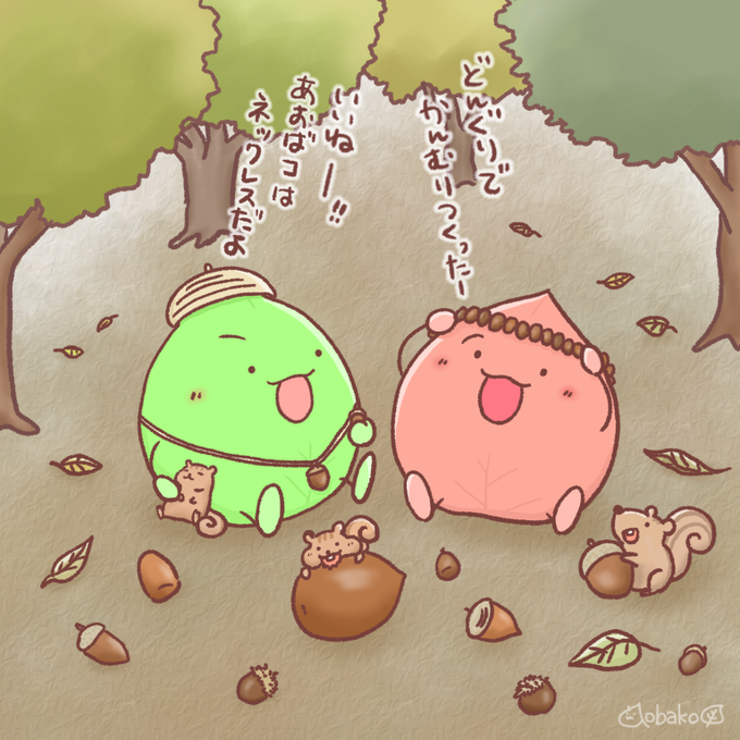 おはばコ~☀️ 今日はあかばコとドングリを拾いに行ったんだ🌰✨️ ドングリのネックレスってかわいくない!?(* ॑꒳ ॑* )︎💕︎ もっと色々作りたいなぁ〜🎶 #かんむりはちょっと痛そうだなってひっそり思ってる #リスさんの分もあるよ #あおばコ #イラスト $picRT #どんぐり #sns秋の芸術祭2022