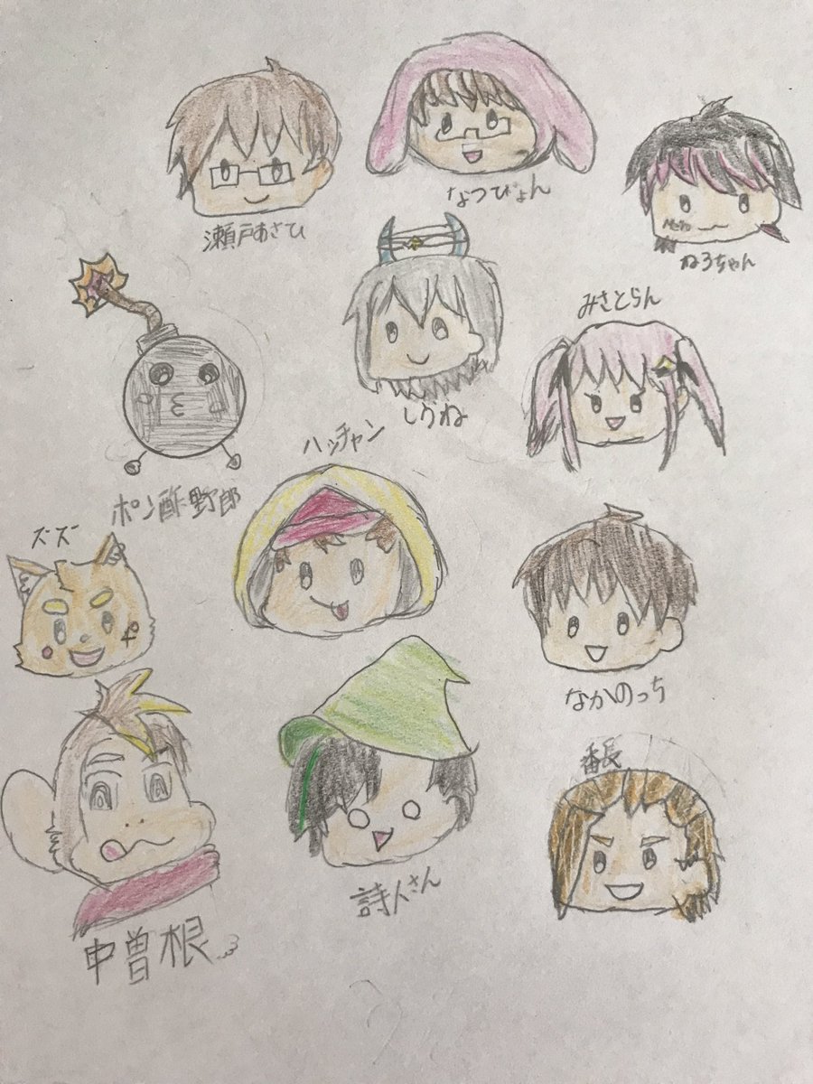 初デジタル絵!のっちさん、ハッチャンさん、ズズさん、ポン酢野郎、みさとらんちゃん、しうねさん描きました!のっちさんは登録者数20万人頑張ってください!#あーとっち #みさとらん補充中 #卯ノ花しうねち #ハッチャンの絵 #ズズ #ポン酢野郎 #なかのっち20万人強化月間 #うるさくてすみま船