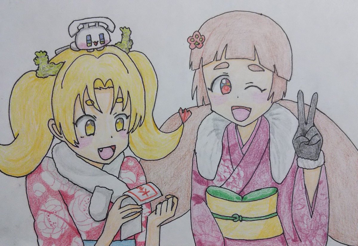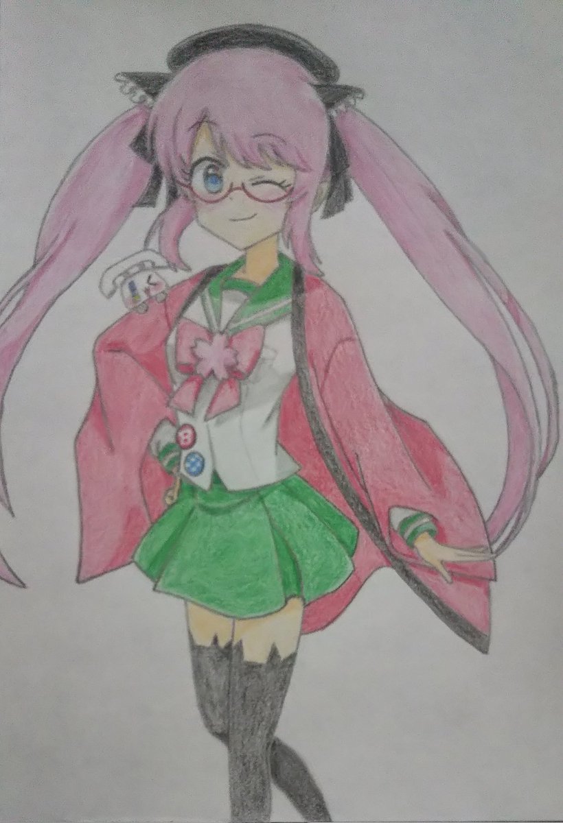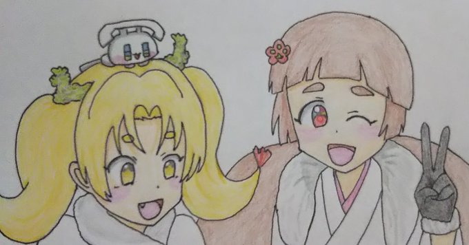 #6月21日はエビフライの日 #6月23日は水戸たんのバースデー お祝いイラスト完成しました! 改めまして #なごやたん 、 #水戸たん 、おめでとうございます!🎉✨🎁✨(≧▽≦)🐈️ #ビッカメ娘 ( #ナイセン ) #ビッカメ娘を描き隊 #模写 #色鉛筆 #絵描きさんと繋がりたい