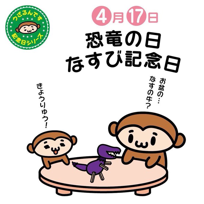 4月17日は恐竜の日&なすび記念日。1923年、アメリカの学者が恐竜の化石調査のために出発した記念日なんです。そしてよいナス(417)でなすび記念日でもあります。麻婆茄子が食べたくなります。なんでナスってなすびって言うのかな〜 #恐竜の日 #なすび記念日 #イラスト好きさんと繋がりたい