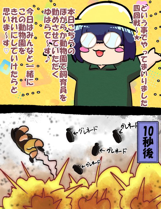 #なつめさんちの美術室 この前の動物園の動画が色々楽しすぎたのですが、とりあえず一番不憫だと感じたゆはらさんのシーンを描きたくなったので描いてみました…😅 (今までの戦いを見ていて何故あんなほがらかな挨拶を…?)