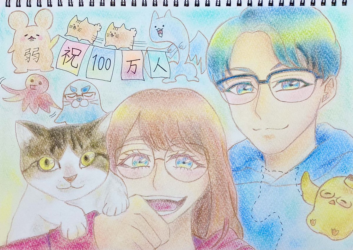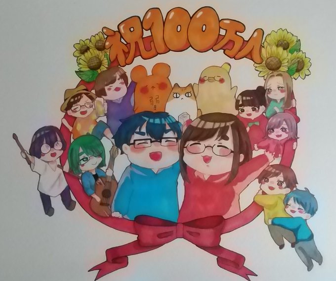 100万人おめでとうございます!!🥳🌻🎉(もう103万人ですね!) なつめさんちと出会ってから、絵を描くことがさらに楽しくなりました!本当にありがとうございます‼︎ これからもずっと、げんさん、さやさんのことが大好きです!!! #なつめさんちの美術室 #なつめさんち100万人