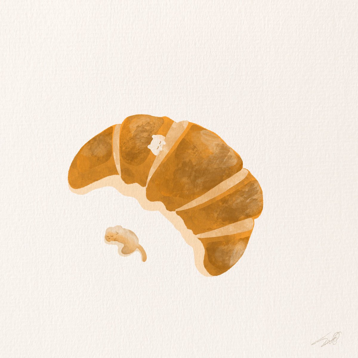 クロワッサンの'すきま'で寝てみました #ななしおばけ #オリジナルキャラクター #オリキャラ #オリジナルイラスト #イラスト好きな人とつながりたい #イラスト #絵描きさんと繫がりたい #絵描きさんフォロバ100 #絵柄が好みっていう人にフォローされたい