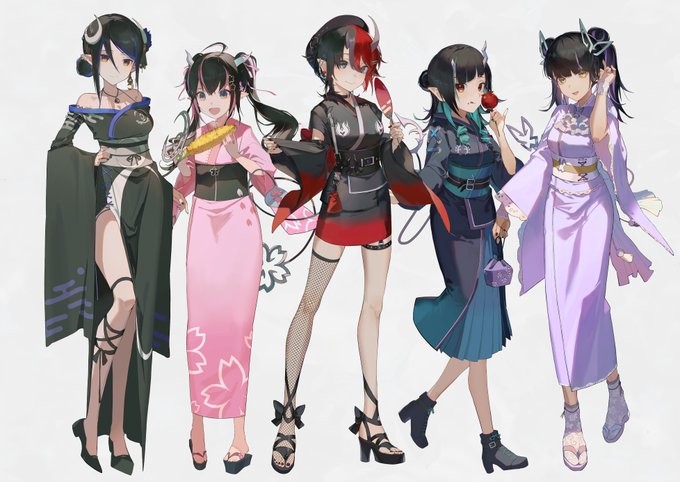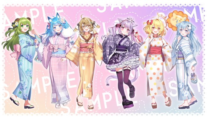 #ななし夏祭り2023 にて茜音カンナさん、涼海ネモさん、橙里セイさん、家入ポポさん、瑚白ユリさん、紫水キキさんの浴衣姿描かせていただきました!よろしくお願いいたします〜! #ななしいんく twitter.com/774inc_officia…