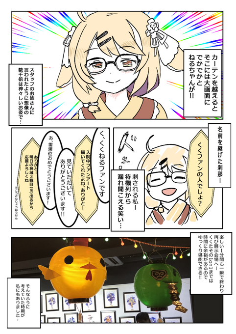 体験レポ漫画を描いたことのない人間による ななし夏祭り2023体験レポ漫画(写真多め) 3Pからは、ねるちゃんに1on1トークの内容盛り込んでよいかお伺いしてから描きますので少々お待ちを… #ななし夏祭り2023