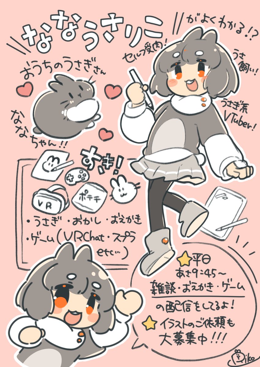 【固定用】 完全セルフ受肉うさぎ系VTuberの ななうさりこ です🐰✨ 平日朝9時45分からお絵描きやゲーム、雑談配信をしています! ■イラストのご依頼 potofu.me/rikonanausagi2… ■YouTube youtube.com/@riko.2525 ファンアート✏️ #ななりこあーと 配信の感想🎤 #ななうさちゃんねる ↓続く↓