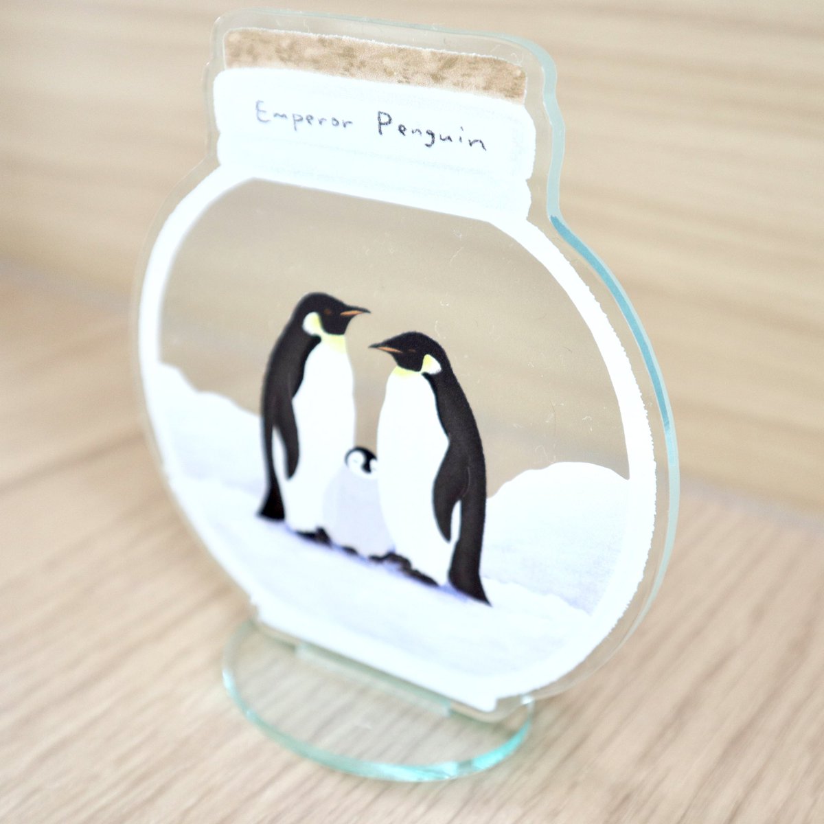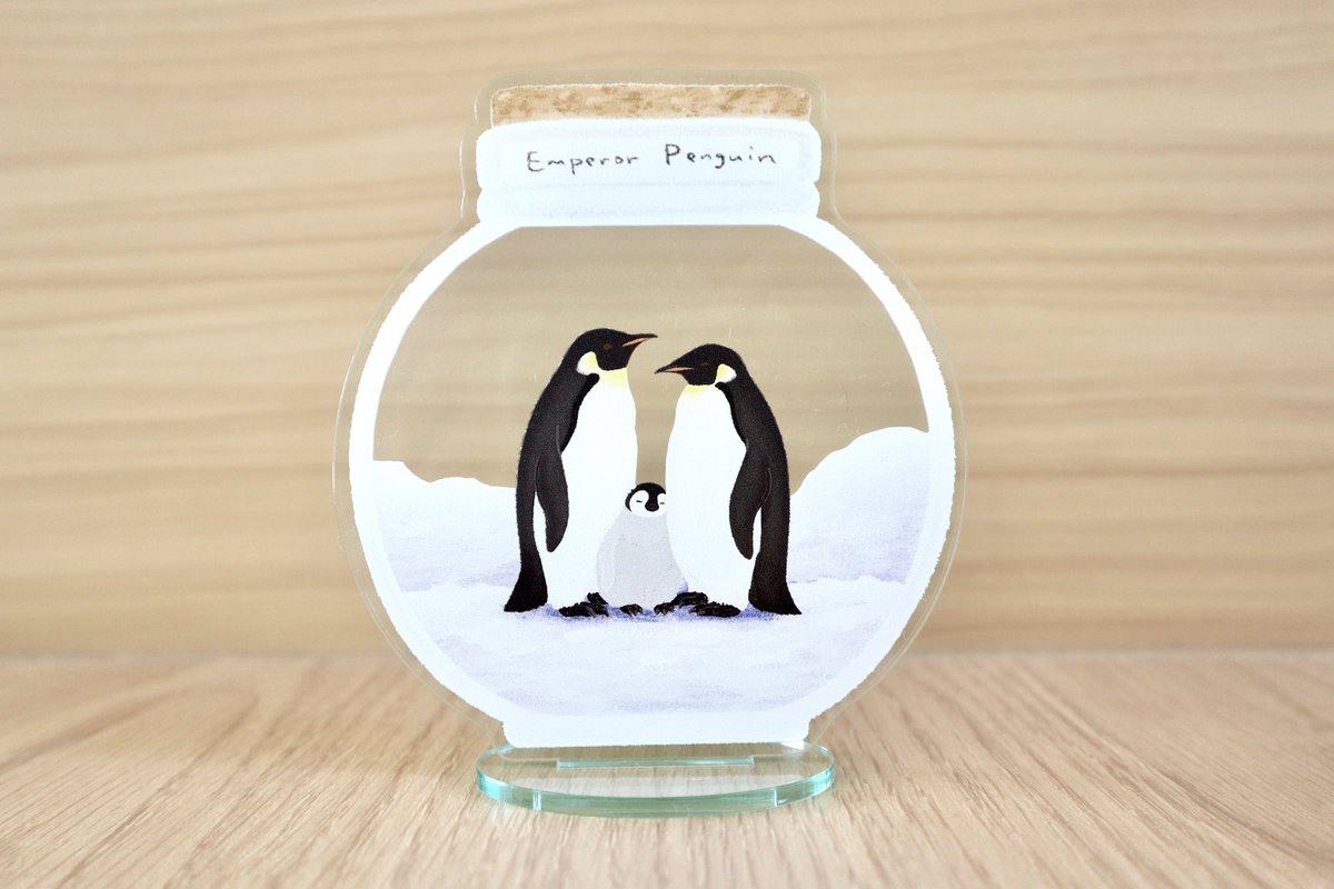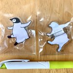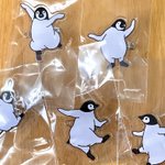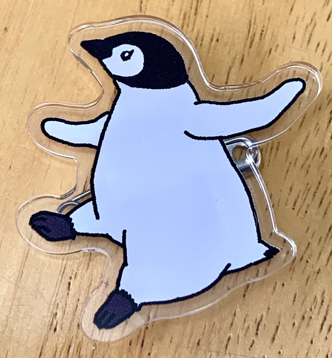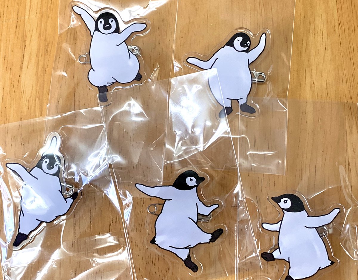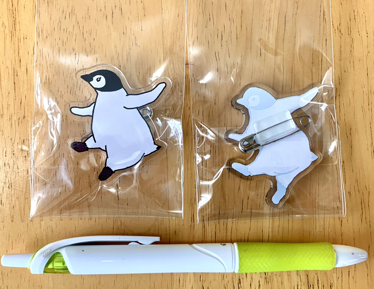 やっと現物お見せできるターンが来たワァ〜 踊る!エンペラーヒナのアクリルブローチが納品されました🥰 ヤッッバ可愛い・・サイズ感は画像のボールペン比較で。 これはね、いくつかまとめてトートとかに付けたい奴じゃんね✨ #ならペンギンランド で♡ (p*com/マツザキユキ)