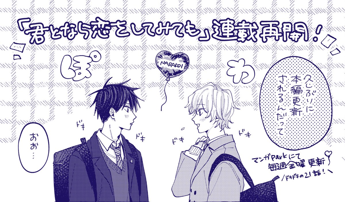 【お知らせ】 「#君となら恋をしてみても 」 今週はおまけ更新&お知らせてんこ盛り‼️ 🩵✨ボイスドラマ配信開始です✨🩷 山菅龍司役 #内田雄馬 さん 海堂天役 #天﨑滉平 さん めっちゃくちゃ最高なので是非聴いてください!!!!! アプリDL【mangaparkprod.page.link/JBUF】 #マンガPark #なら恋🐈⬛🐈