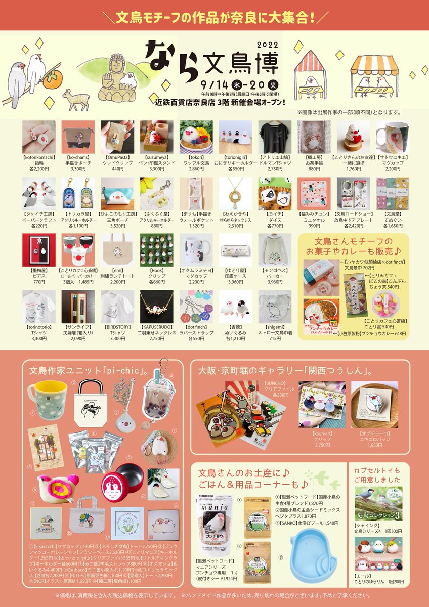 出展お知らせ✧(*,,ÒㅅÓ,,)✧ なら文鳥博 日程:9月14日(水)~20日(火) 会場:近鉄百貨店 奈良店 3階 新催会場 今年もなら文鳥博を参加させて頂きました✨ 「文鳥たくさん文房具セット」何点をお送り致しました〜♫ 早い者勝ちですよ( •̀∀•́ ) ✧ #なら文鳥博 #文鳥好きな人と繋がりたい #イラスト
