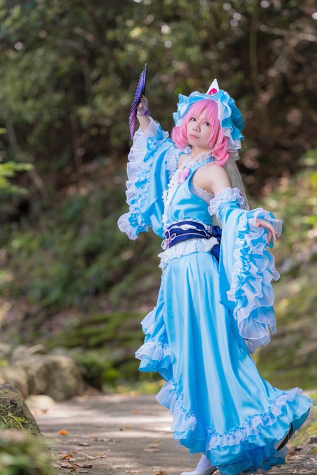 ⚠️コスプレ ○年ぶりの幽々子様コス 2枚目はジャンプしてヒラみを出すアレをお願いして撮っていただきました!😉 p @NmbMilky 様 #温山荘コスプレ開放 #なんて素敵な和歌山なんでしょう