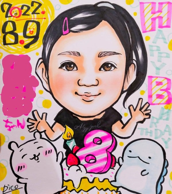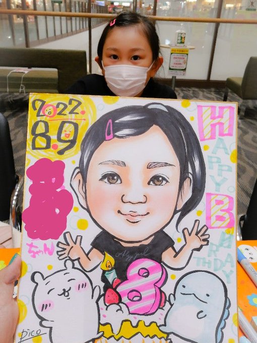 続き 8月9日(火)リバーサイド千秋 2/3 先日ご一緒したママさんがインスタ見て来てくれたり 誕生日の子には好きなキャラクターと一緒に描いたり #似顔絵 #似顔絵師 #にこまる #イベント #イラスト #イラスト好きな人と繋がりたい #絵描きさんと繫がりたい #illustration #Illustrator #drawing #art