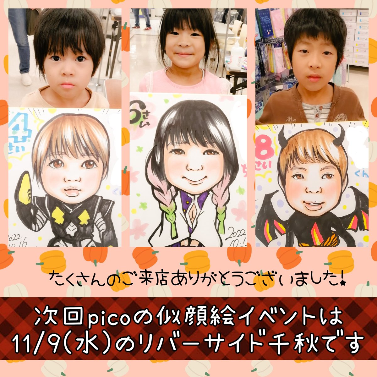 11月9日(水) 明日! 平日のリバーサイド千秋(長岡市)で 似顔絵イベントやりまーす! お気軽に遊びに来てね〜 #似顔絵 #似顔絵師 #新潟 #新潟県 #にこまる #イラスト #イラストレーター #イラスト好きさんと繋がりたい #illustration #illustrator #art #artist #イラスト好きと繋がりたい #イベント
