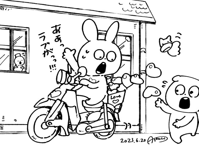 得意気なラブラビちゃん❤️🐰ぴこたま尊敬の眼差し👀 小さい頃、どこまで指を手の甲側に曲げられるかとか、そんな他愛ないことをしてわいわい遊んだことを思い出しながら😂このスタンプを最近知って描きたかったのもあります笑 #にしむらゆうじファンアート #ラブラビット