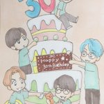 準備してたのに焦ってしまって色々間違えちゃった😭 あらためてお誕生日おめでとうございます🎊 みんなに愛されてる西山さんを描きたかったんです☺️ 今日の配信も楽しみにしています! #西山宏太朗生誕祭2021 #にしやまといっしょ #江口拓也 #小野賢章 #花江夏樹 #梅原裕一郎