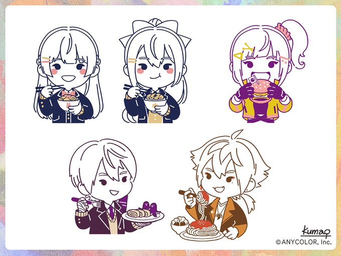 🌈🕒「にじさんじお食事グッズ2」 第2弾もイラスト担当しております🧸㊗️ 月ノ美兎さん&樋口楓さん、早瀬走さん、剣持刀也さん、伏見ガクさんを描きました。食器の種類が豊富で最強です。 詳細はこちら▽ prtimes.jp/main/html/rd/p… 🍽#にじさんじお食事グッズ 2
